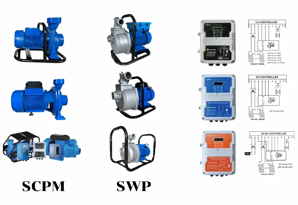 เครื่องมือสำคัญสำหรับการสูบน้ำผิวดินจากลำคลอง สระน้ำ หรือบ่อเก็บน้ำธรรมชาติ โดยเฉพาะในภาคเกษตรกรรม เช่น ฟาร์มแปลงผัก พืชไร่ และสวนผลไม้ ที่ต้องการสูบน้ำปริมาณมากในเวลาสั้น ด้วยคุณสมบัติในการส่งน้ำได้ระยะไกลและให้แรงดันสูง เหมาะสำหรับระบบที่มีท่อซับซ้อน หรือใช้ร่วมกับหัวพ่นน้ำขนาดต่าง ๆ มีให้เลือกทั้ง แบบ DC (กระแสตรง) และ แบบ AC/DC (กระแสตรงและกระแสสลับในตัว) เพื่อให้เหมาะกับสภาพแวดล้อมและลักษณะการใช้งานที่หลากหลาย